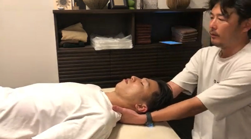 01-03.首の皮膚牽引ストレッチ(仰臥位)