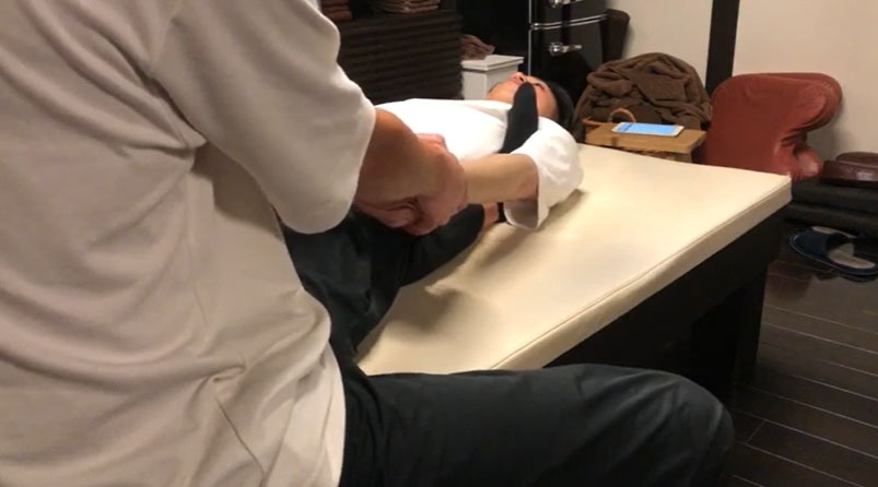 02-04.脇に足入れ牽引(仰臥位)