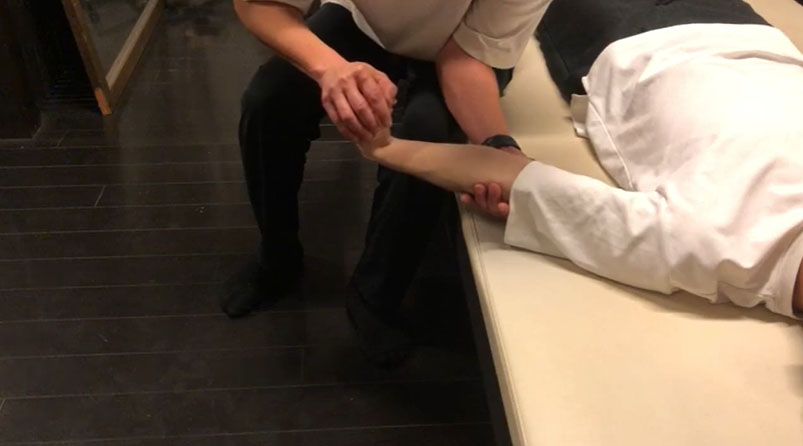 03-01.前腕 尺側手根屈筋ストレッチ(仰臥位)