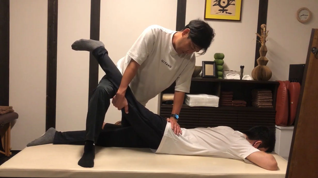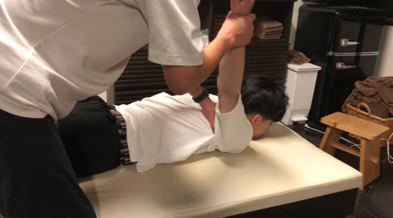 08-05.うつ伏せ後ろへ鼠径部伸ばし(腹臥位)