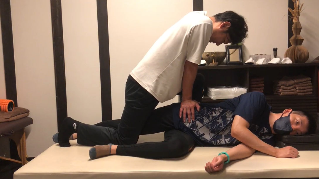 10-01.大腿四頭筋ストレッチ巧打法(仰臥位)