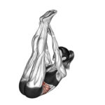 - 地面に着くか着かないかのギリギリの位置で止め、再びおへその方に曲げていきます。