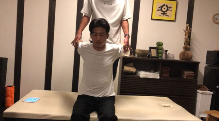 04-06.大胸筋、小胸筋、三角筋前部のストレッチ(座位)