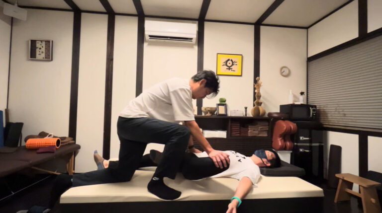 10-01.大腿四頭筋ストレッチ巧打法(仰臥位)