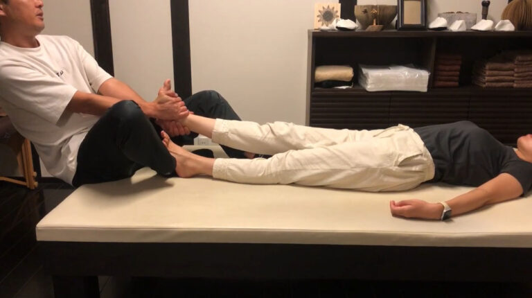 08-10.脚を引っ張って股関節牽引(仰臥位)